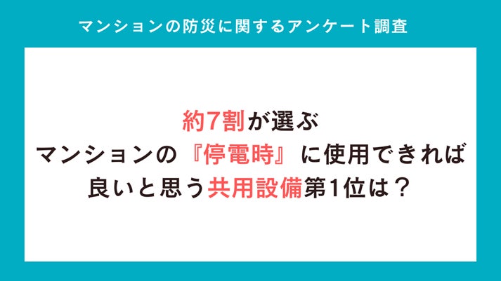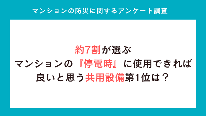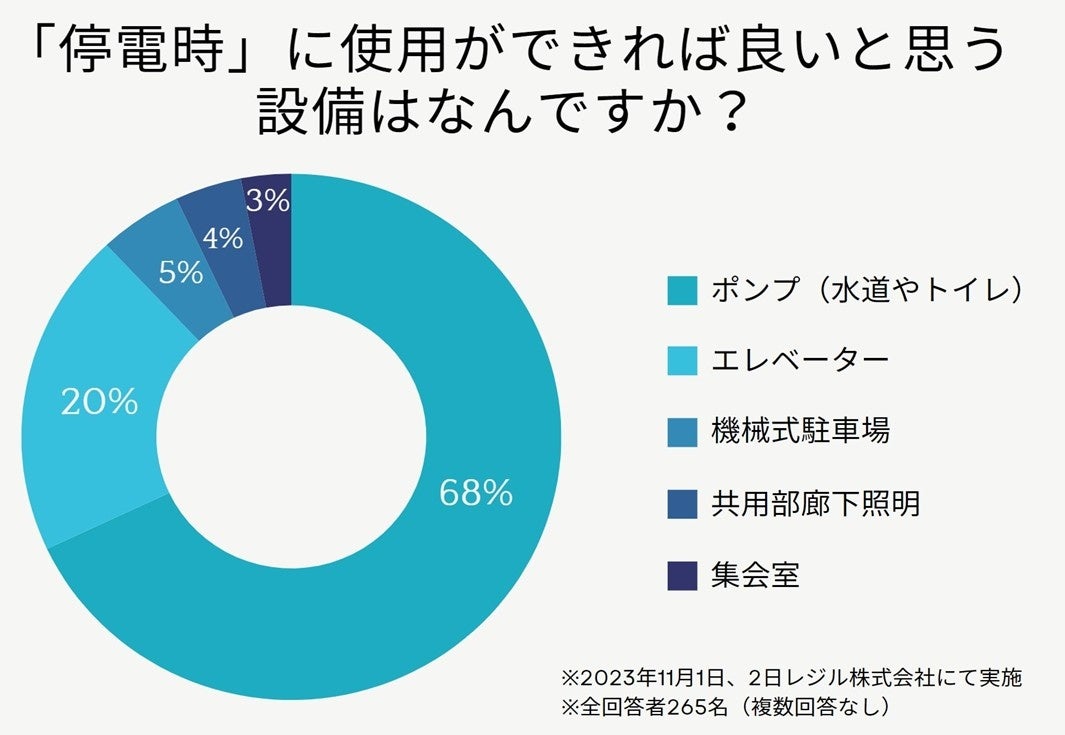 『マンション停電時』に使用できたら良い共用設備、1位は「ポンプ(水道やトイレ)」で7割、次いで「エレベーター」が2割、来場者アンケート・コメントから見えるマンション防災における需要とは