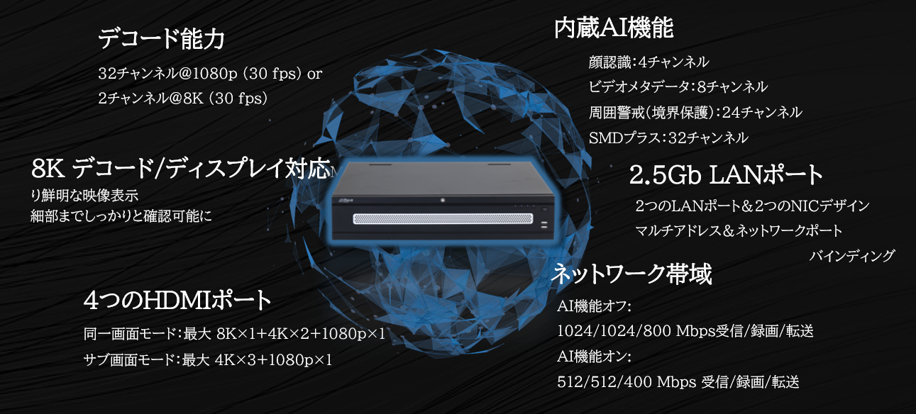 多数なAI機能内蔵し、8K映像対応する強力なNVRでパフォーマンスを向上させる