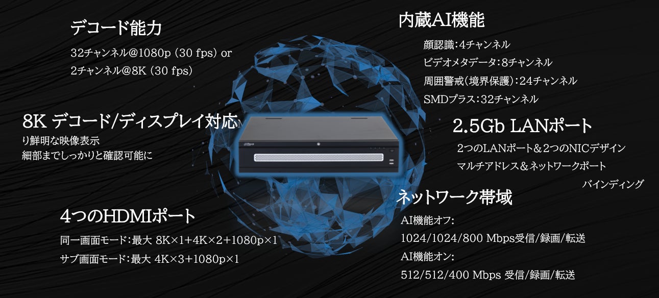 Dahua Technology Japan 合同会社(所在地:東京都中央区、 職務執行者:リー・ビン)は、当社は2002年に世界初の8チャンネルリアルタイム組込型DVRをリリース以来、20年間映像ストレージの技術を開発し続けています。強力なAI機能でインテリジェントCCTVシステムを構築したい、既存カメラを交換することなく、既存CCTVシステムをアップグレードしたい、カメラを一元管理したいお客様へ、20年間の集大成といえる当社最も強力なネットワークビデオレコーダーNVR600-XIシリーズを提案します。本製品は2022年12月1日より提供いたします。