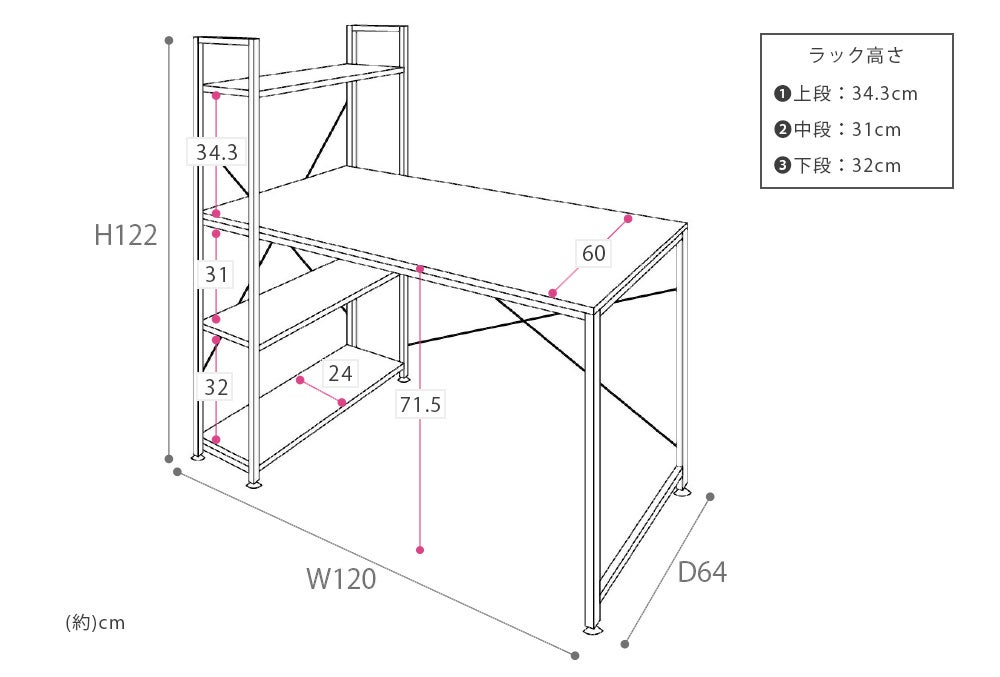 - 耐 荷 重 :(約)天板20kg、棚5kg