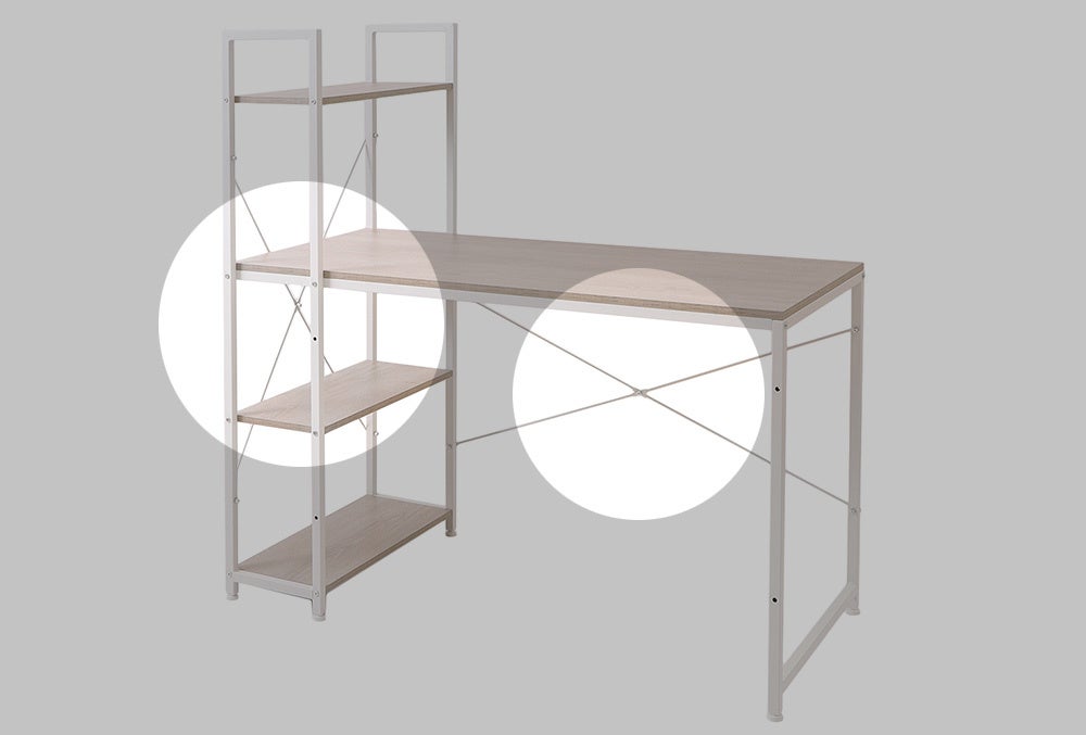 デスク本体とデスクラックには、横揺れ防止のクロスバーを取り付けました。これによりぐらつきを軽減し、デスクの安定性を高めます。様々な作業を想定した頑丈な設計となっています。PC本体やプリンターなどの台としてもお使いいただけます。