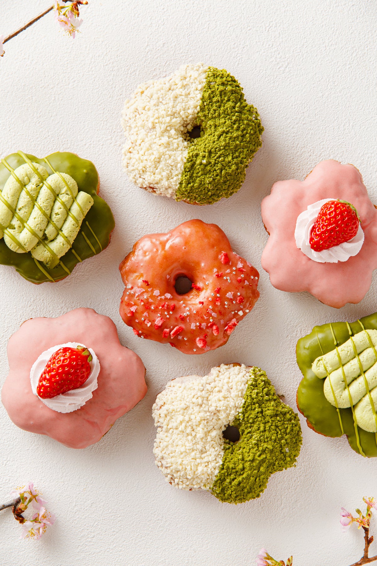 丸ごと苺ブロッサム、抹茶ティラミスブロッサムなど全4種。春の訪れを感じる桜型ドーナツを3月16日(月)〜4月12日(日)期間限定で販売!