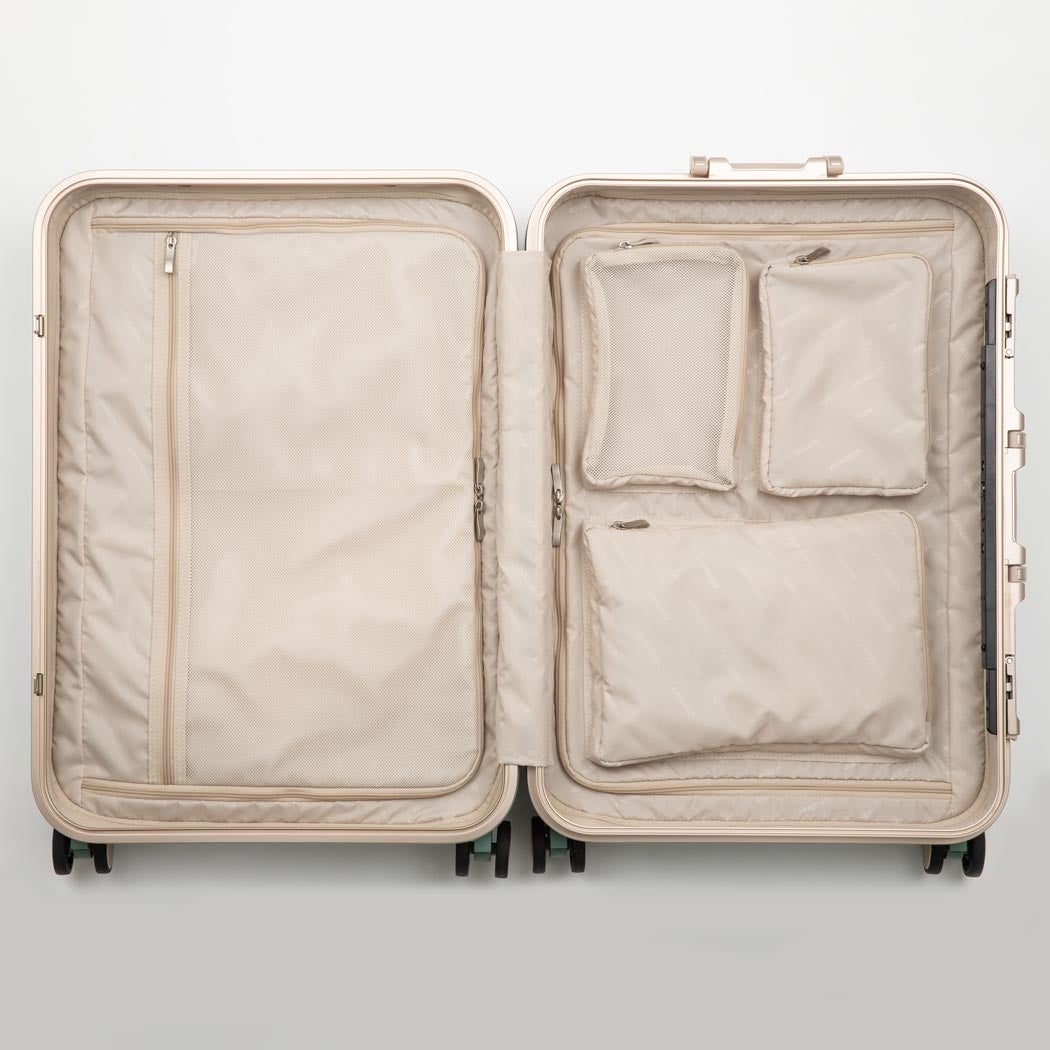 機能面では、軽量で衝撃に強いポリカーボネート100%の3層構造ボディと、衝撃に強く歪みにくいアルミ製の深溝フレーム、ちょっとした荷物などを掛けられるフック機能付き台座といった「5088」の特長はそのままに、さらなる使いやすさを追求。ベアリング構造により滑らかな操作性と静音性を実現する独自開発のストッパー付高機能キャスター「Metro Walker」をはじめ、スマホスタンドとフックを一体化したキャリーバー、USBポート(Type-A/Type-C)など、旅先での快適さを高める機能を新たに搭載しました。さらに、内装には取り外して丸洗いできる「Washtec(ウォシュテック)」を採用し、清潔さを保ちながら長く愛用できる仕様に。マチ付きポケットを備えた内装仕切りにより、小物類の整理もしやすくなりました。