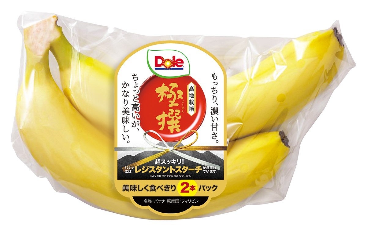 『Dole極撰バナナ』とは、Doleが研究・開発した100種以上の苗の中から選び抜かれた甘み、香り、食感、すべてが高品質なバナナです。販売開始から15年、もっちり濃い甘さの高地栽培バナナとして多くのお客様から愛され続けている商品です。