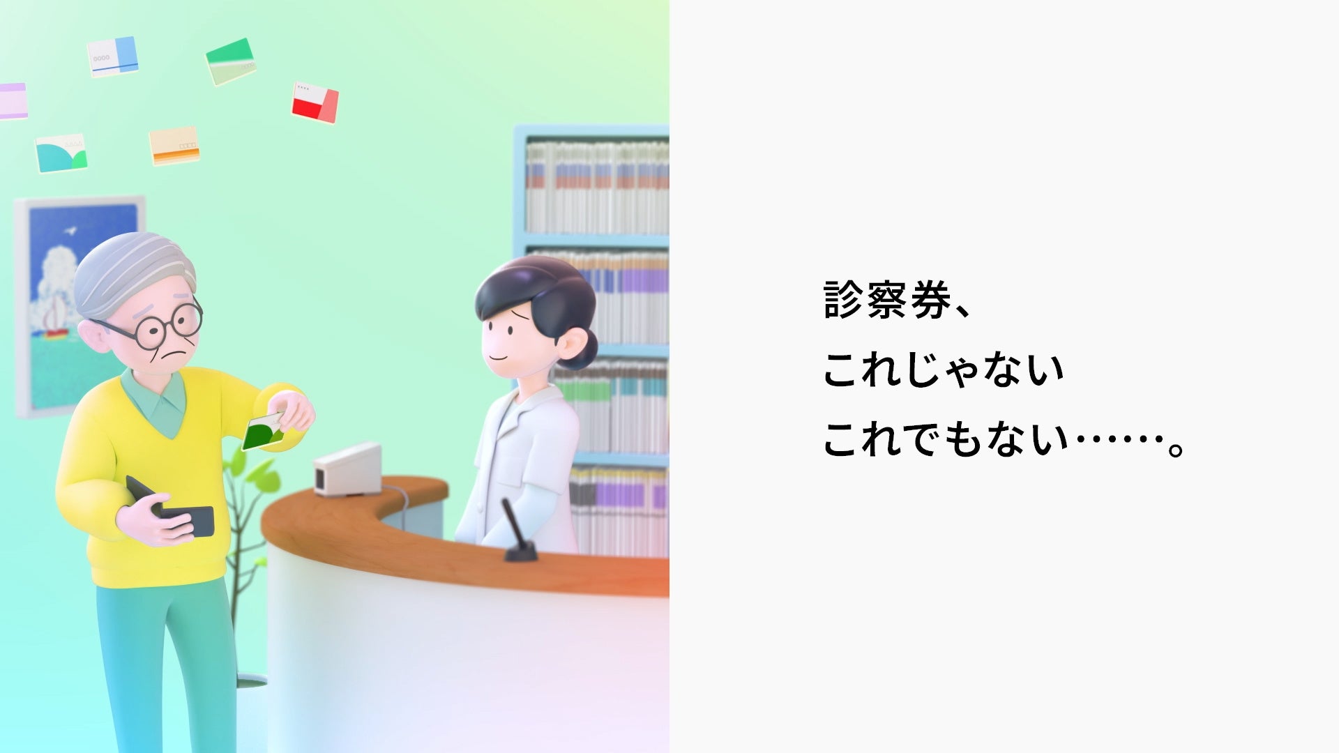 マイナンバーカードは将来、病院の診察券としても利用できるようになります。「診察券、これじゃない、これでもない……。」となることなく、いろんな診察券を1枚にできるようになります。