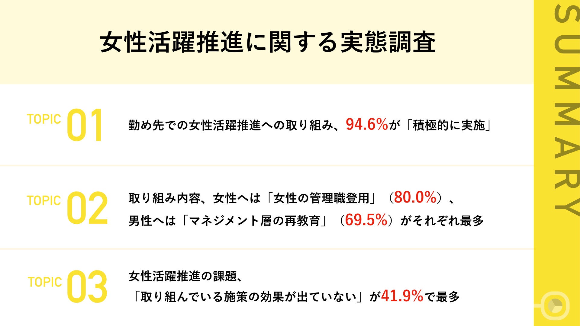 - 女性活躍推進への取り組み、94.6%が「積極的に実施」と回答