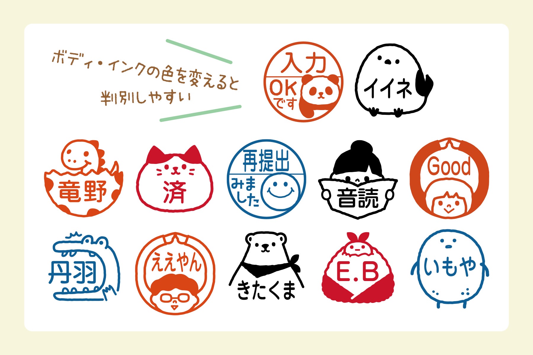 お子さまの連絡帳や音読カードのサイン、塾や学校の先生が提出物に押す確認印に使える、かわいいイラスト入りの印鑑です。幼稚園・保育園の卒園記念品などにオススメです。
