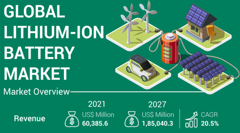 リチウムイオン電池市場は、2027年までに年平均成長率20.5%で成長する見込み