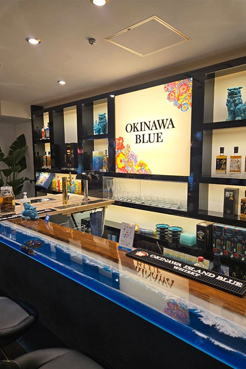 2022年那覇空港内にオープンしたウイスキーBAR「OKINAWA BLUE 那覇空港店」、2023年平和通りにオープンしたウイスキーSHOP「OKINAWA BLUE 平和通り店」、2024年市場本通りにオープンしたウイスキーSHOP「OKINAWA BLUE 市場本通り店」に続き、「OKINAWA BLUE 新橋店」が4店舗目の直営店舗となります。