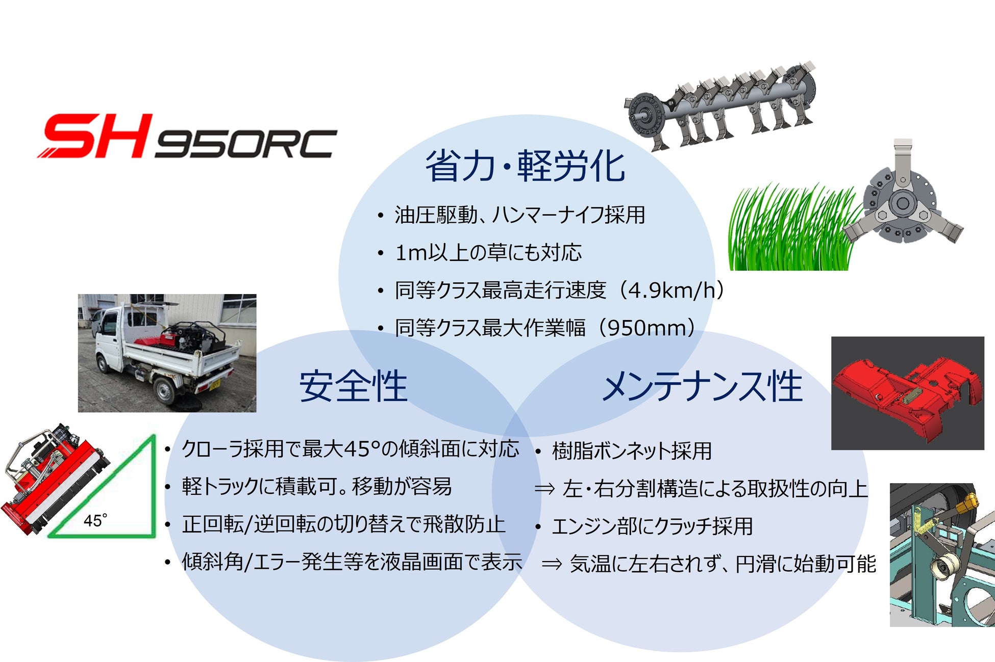 たび販売開始します。このたび販売開始する「リモコン小型ハンマーナイフモア SH950RC」は、国立研究開