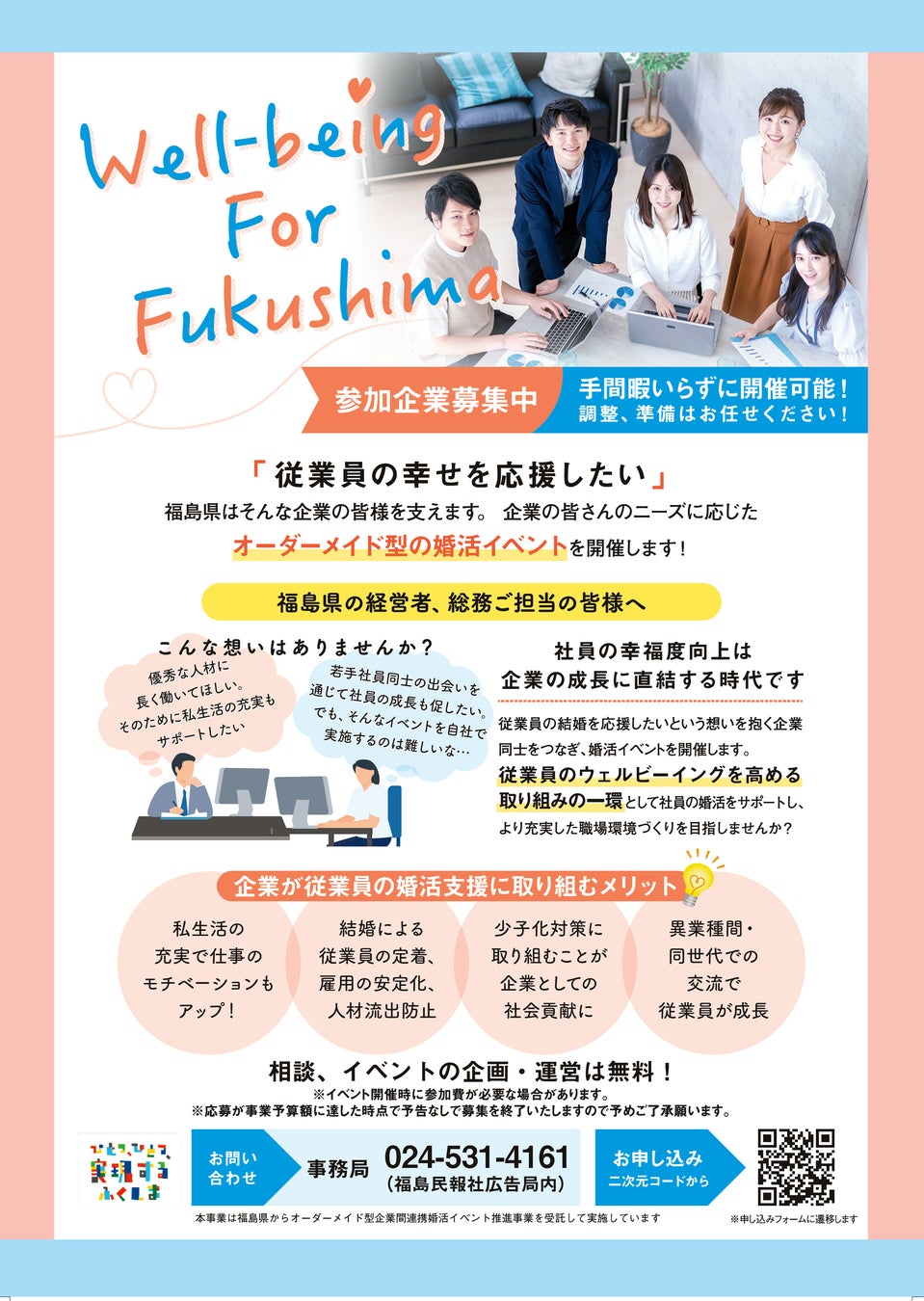 「福島県」×「企業」 Well-being For Fukushima まずはお気軽にお問い合わせください!