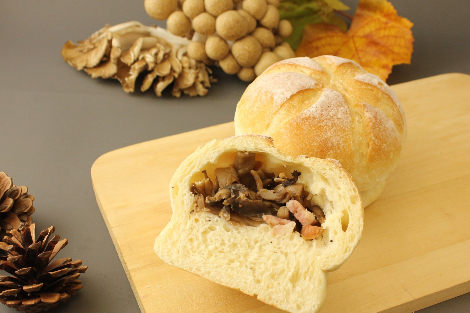 ルヴァン種とフランス産岩塩を使用したフランスパン生地に、5種類のきのことベーコンを包み、丸みのあるきのこのような形に焼き上げました。凝縮されたきのこの旨味と食感に、しっかりと効かせたブラックペッパーも美味しさのポイント。