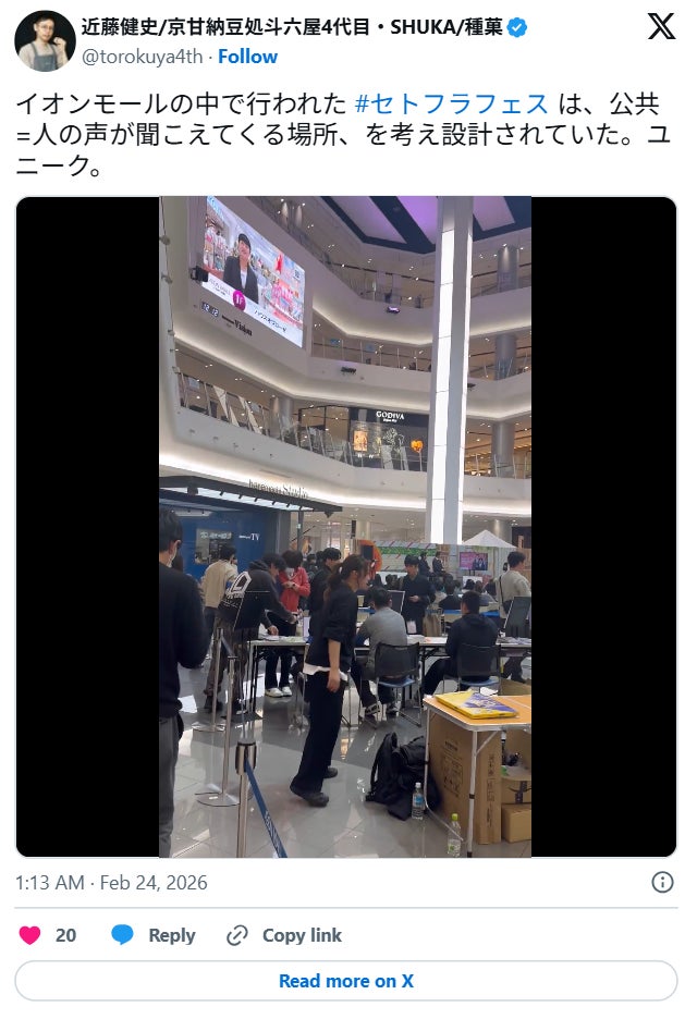 イオンモールの中で行われた #セトフラフェス は、公共=人の声が聞こえてくる場所、を考え設計されていた。ユニーク。