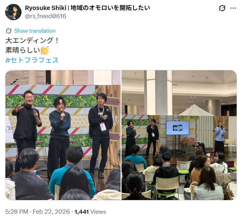 「セトフラフェス 2026 UNLOCAL」は、各セッションで200名以上の来場者を迎え、のべ2,000名を超える方々にご参加いただきました。ご来場いただきました多くの皆様に、改めて御礼申し上げます。