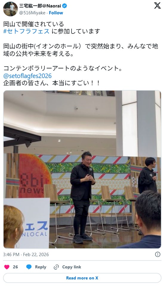 瀬戸内と株式会社(住所:岡山市北区平和町、代表:藤田圭一郎、山田邦明)は、2026年2月22日(日)にイオンモール岡山1F 未来スクエアにて開催いたしました「セトフラフェス 2026 UNLOCAL」が、盛況のうちに閉幕いたしましたことをご報告いたします。
