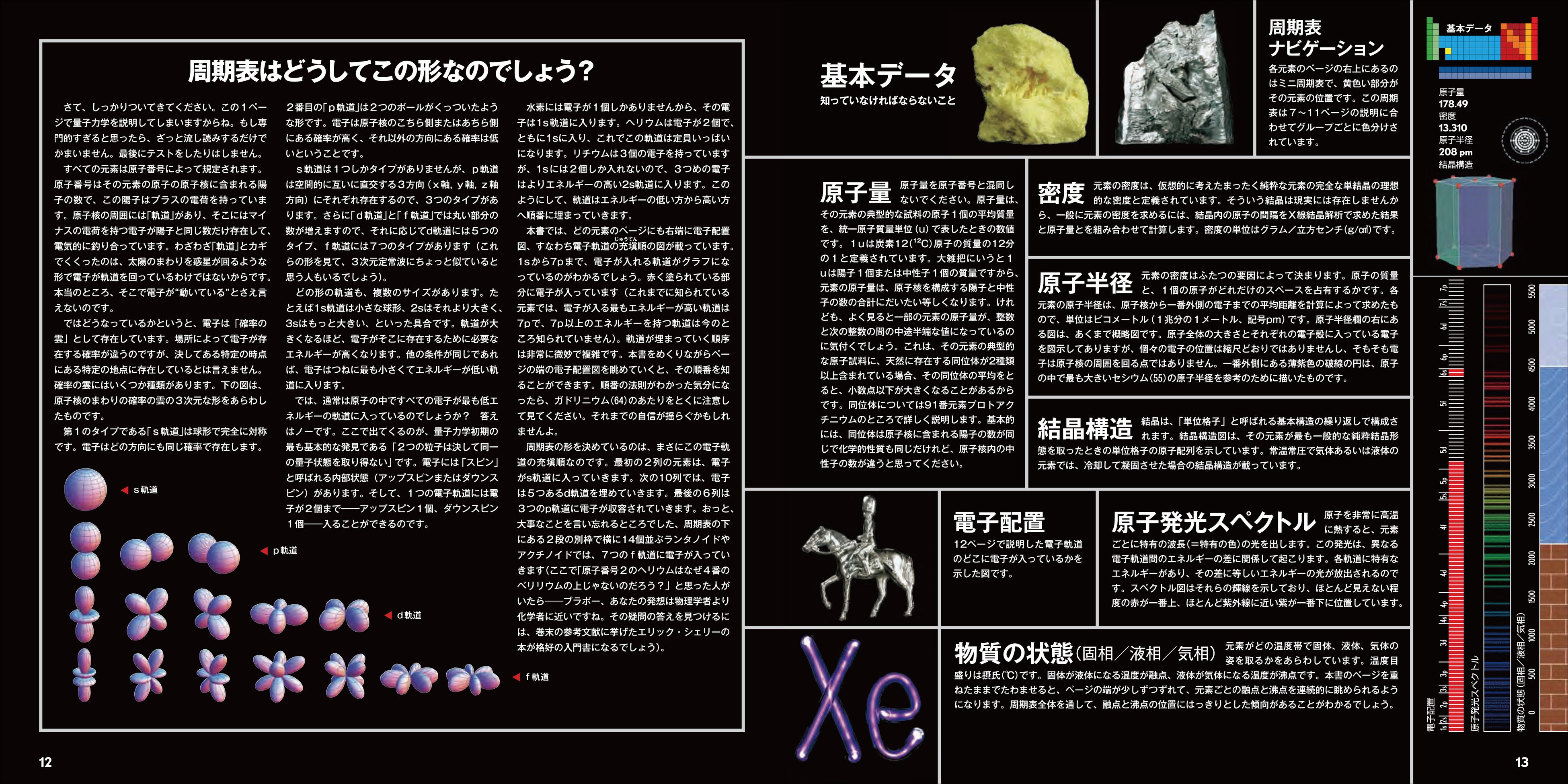 科学エッセー、美しい写真集、最新の元素データ集という3つの顔をあわせもつ、研究者、教員、図書館、すべての科学ファン必携の1冊。巻末の美しい元素周期表も必見です。