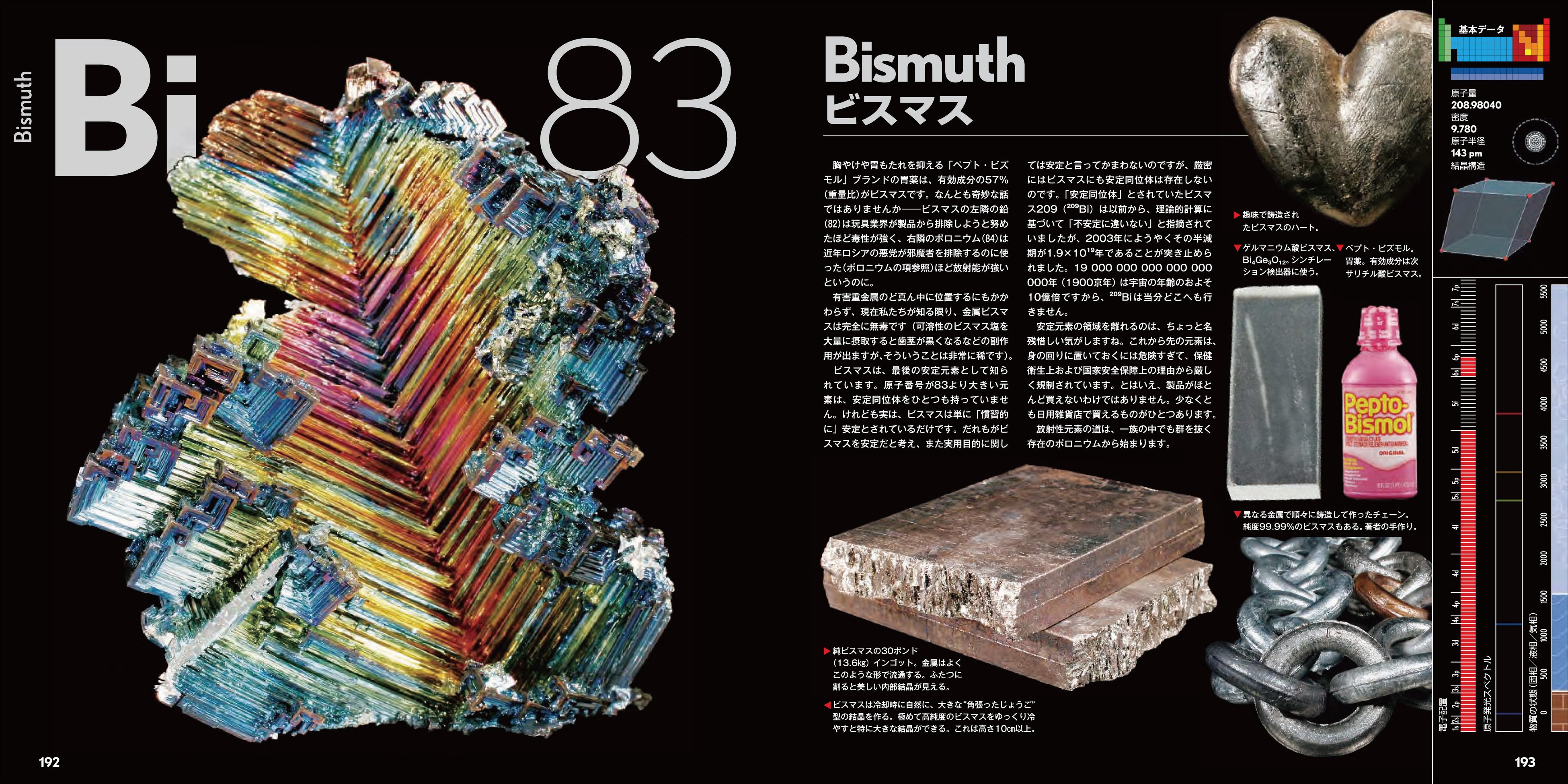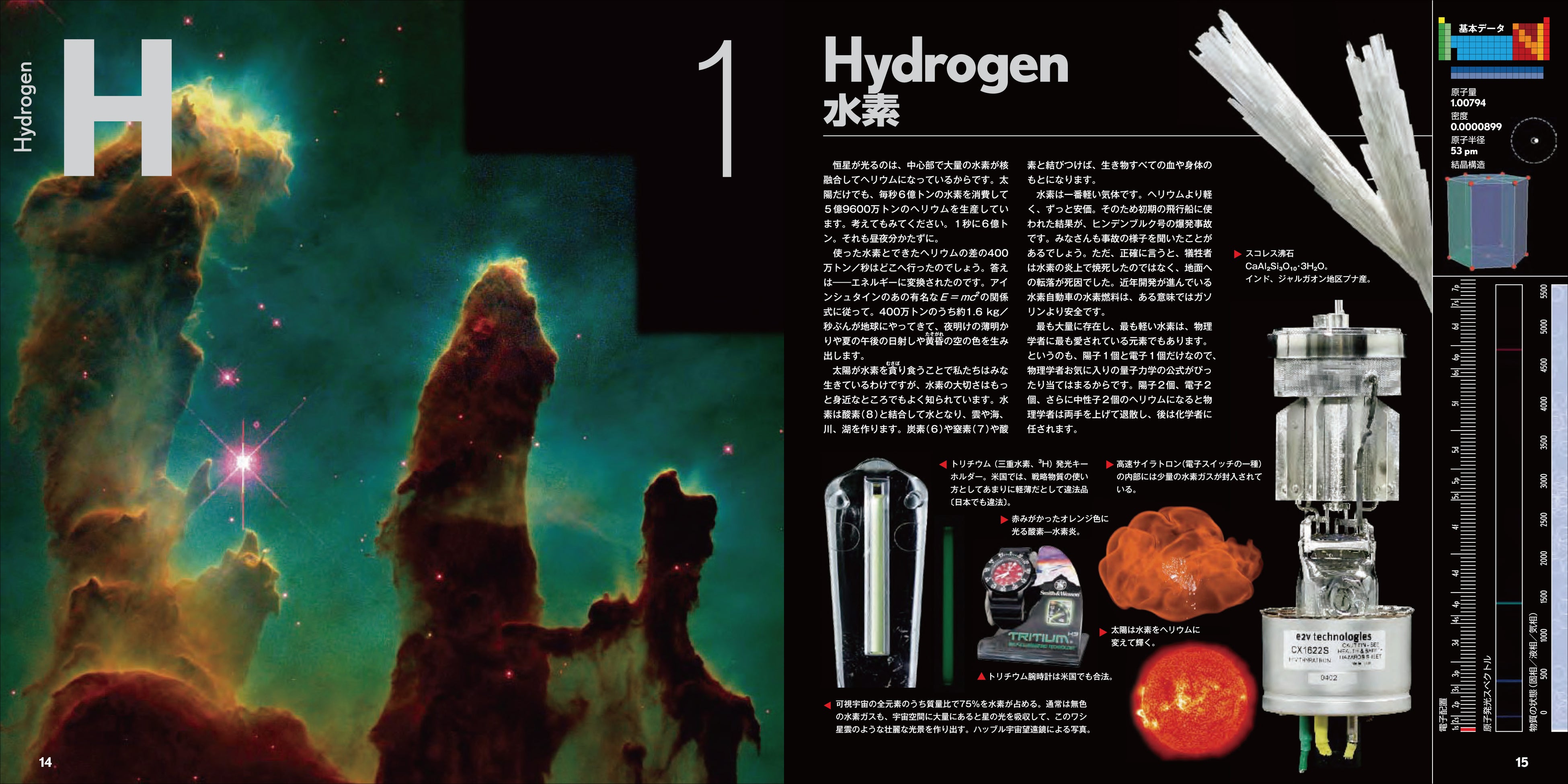 根源118の元素をオールカラーの美しい写真を豊富に使って紹介する全世界120万部、国内30万部のベストセラー。日常生活で見かける製品に意外な元素が使われているなど、科学的な知見に基づいたユーモアにあふれる解説も楽しい。