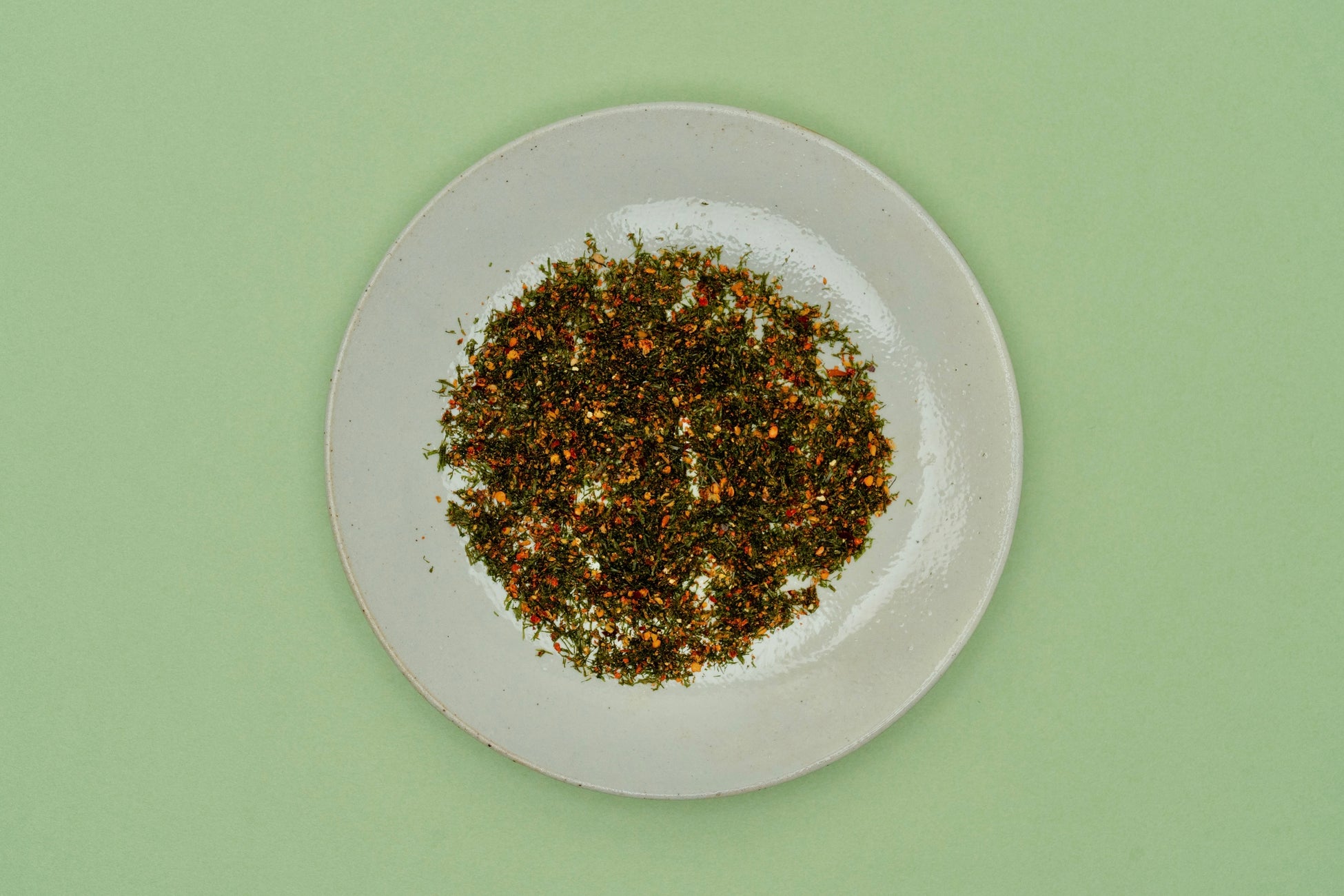 日本独特の香辛料「七味」は、7種類の薬味や香辛料をブレンドした調味料です。厳選した7種類の原材料に、香り高い「すじ青のり」を贅沢に32%配合し、シーベジタブルだけのオリジナルブレンドが完成しました。ナッツのようなコクのある麻種や、柚子や生姜といった食材の香りと旨味をプラス。通常の七味より辛みを控えることで、いつもの料理に振りかけるだけで風味や香りがアップし料理の幅が広がります。
