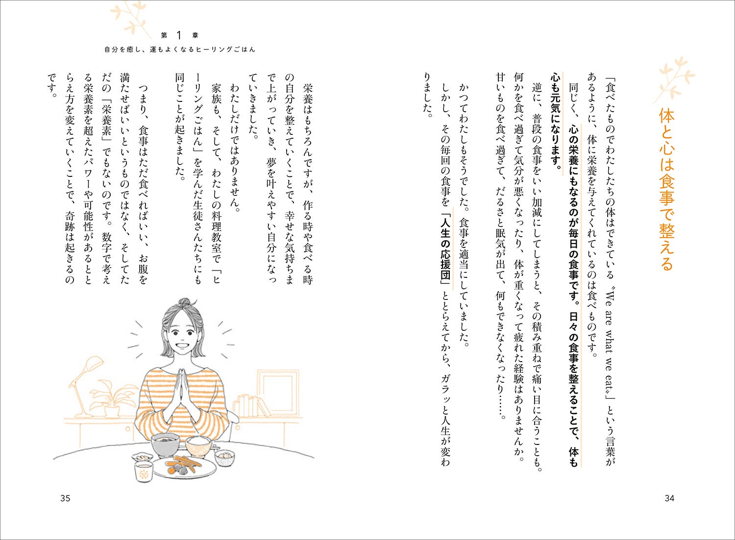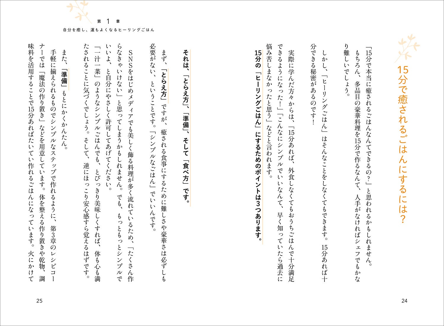 癒されるごはんのキホンのお話から、春夏秋冬のヒーリングごはんレシピなどを収録。