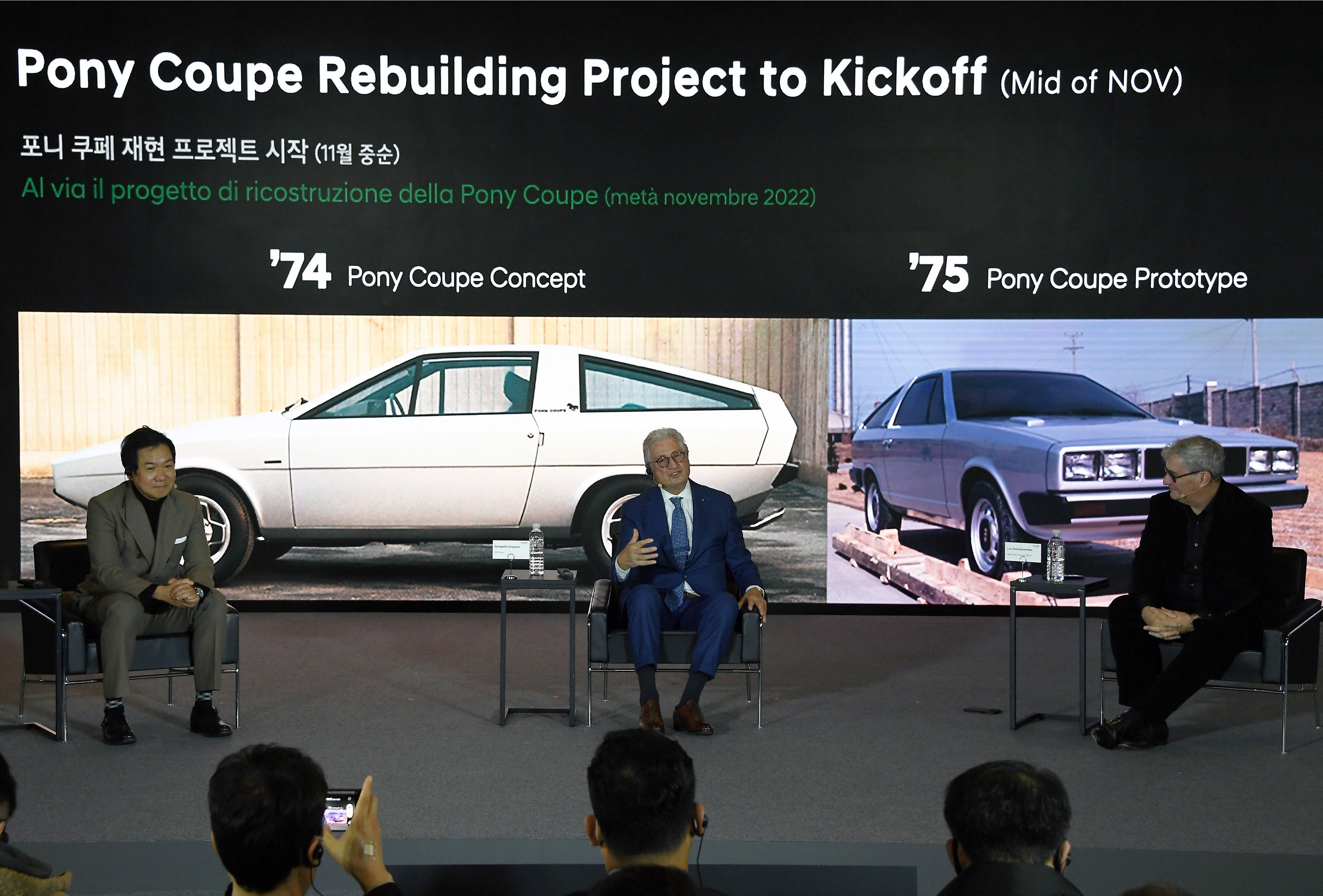 「初代ポニー(Pony)とポニークーペコンセプトは、数々の賞を受賞したIONIQ 5や注目を集めるN Vision 74など、1台だけでなく複数の市販車やコンセプトカーのデザインに影響を与えた稀有な車です。初代コンセプトカーはもう存在しないので、ジョルジェット・ジウジアーロに依頼して、私たちのデザイン哲学である“Shaping the future with legacy”に基づいて再現してもらいました」と、イ・サンヨプ副社長は述べました。