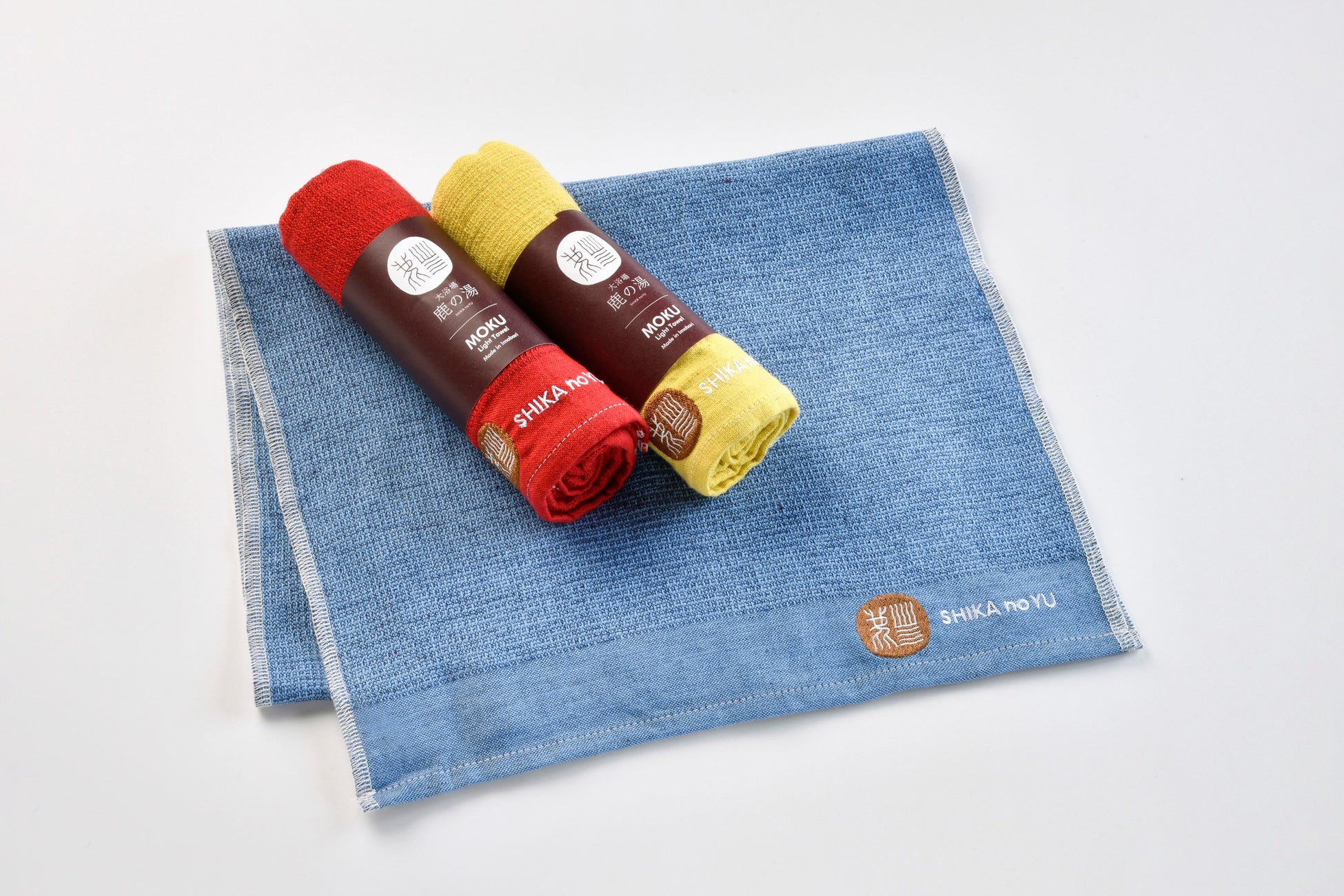 鹿の角をかたどったフェルト生地の『鹿のサウナハット』や、サウナーに人気の当館ロゴ入り『MOKUタオル』。その他にも鹿の湯のキーホルダーを1/2サイズで再現した『アクリルキーホルダー』に当館のロゴが前面にプリントされた『ロゴドンTシャツ』など。温泉とサウナを中心とした定番からユニークなものまで、様々なグッズを展開しております。