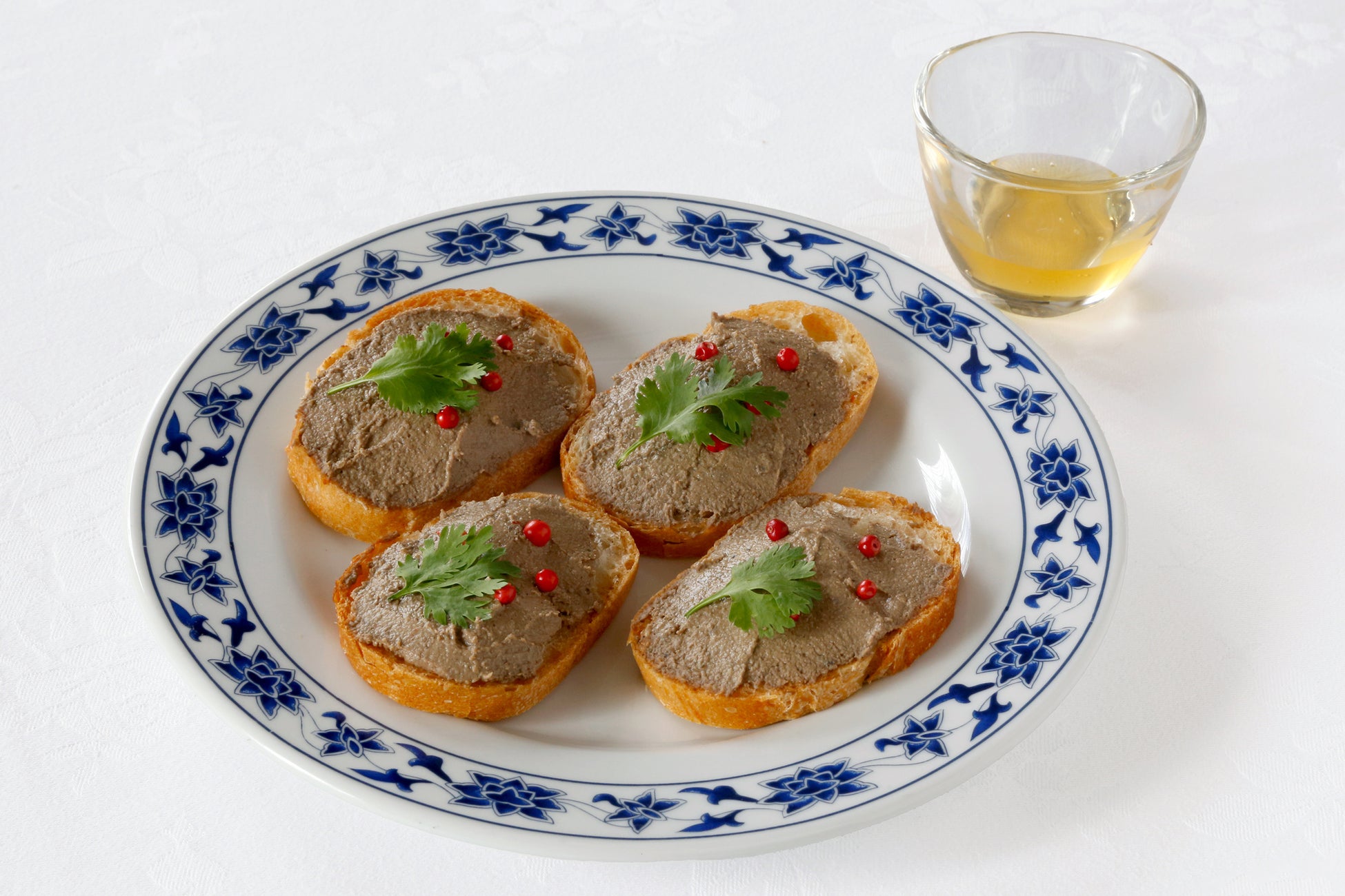 横浜中華街「ローズホテル横浜」で焼き上げたバゲットにのせた麻辣香る自家製の鶏レバーパテは赤ワインとの相性抜群。お好みではちみつをかけて味変もお楽しみいただけます。