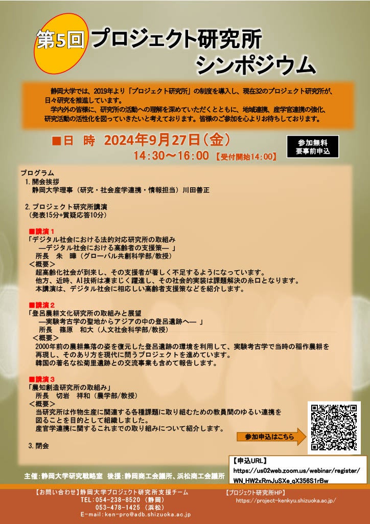 ※登録後、静岡大学プロジェクト研究所支援チームより確認メールが届きます。
