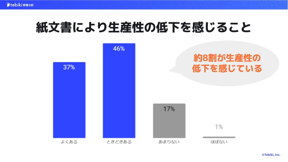 紙文書の使用によって生産性の低下を感じている企業は全体の約83%