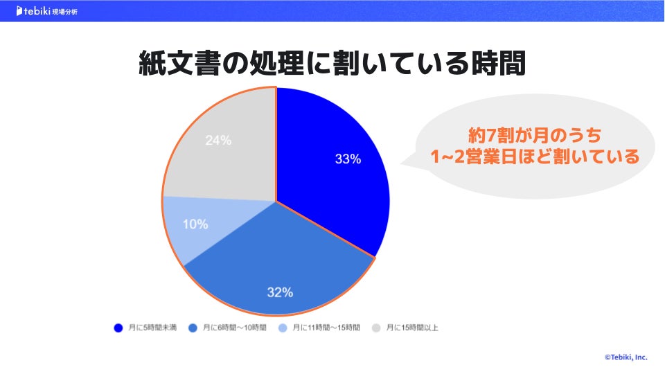紙文書の処理に月当たり6時間以上掛けていると回答した企業が約66%