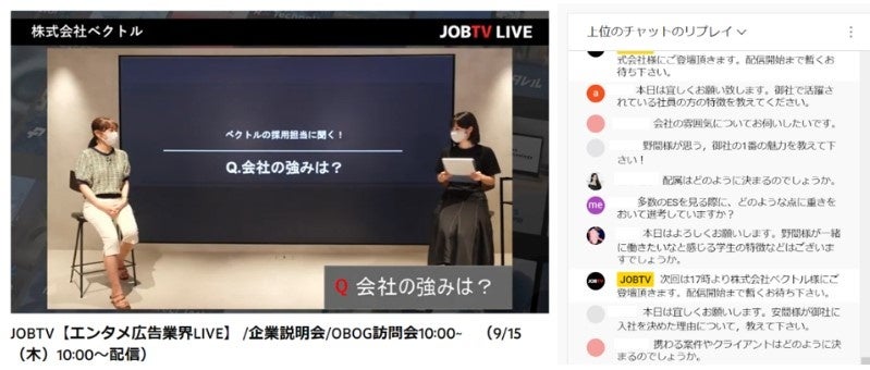 こうした背景を受け、JOBTVではオンラインで企業研究・OBOG訪問・選考情報収集を効率的に行い、人事の本音・企業のリアルを知ることができるオンライン配信イベント「JOBTVLIVE」を定期的に開催しております。