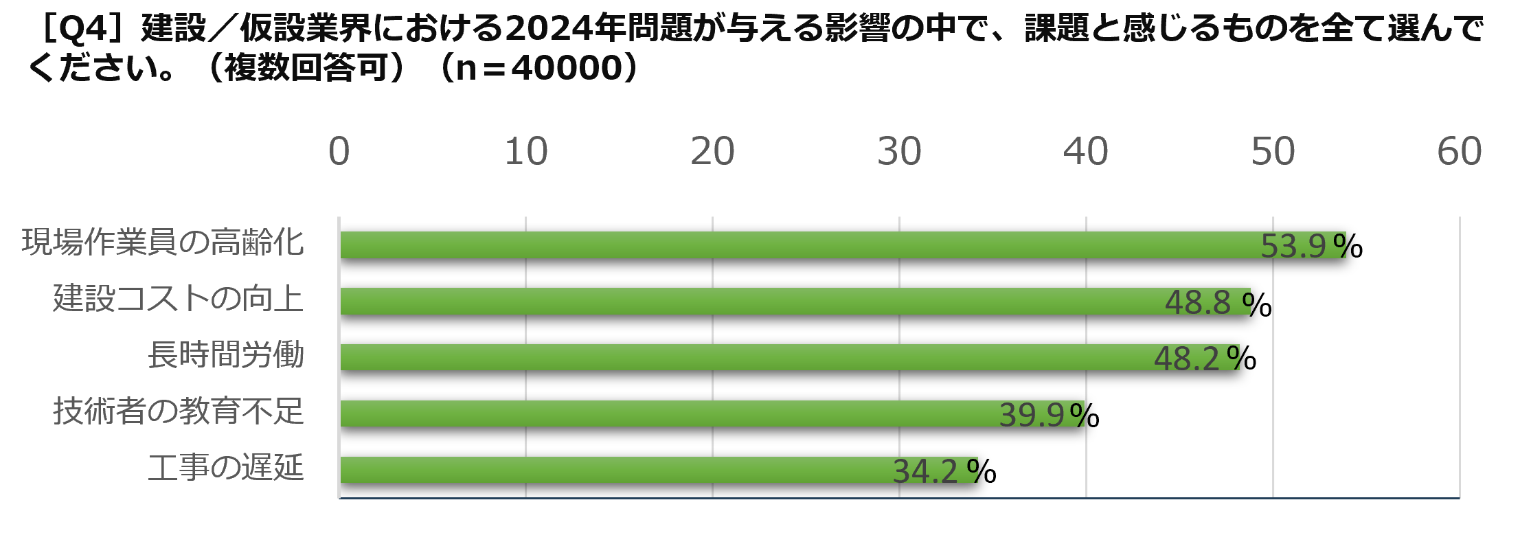 [Q4]建設/仮設業界における2024年問題が与える影響の中で、課題と感じるものを全て選んでください。(複数回答可)(n=40000)