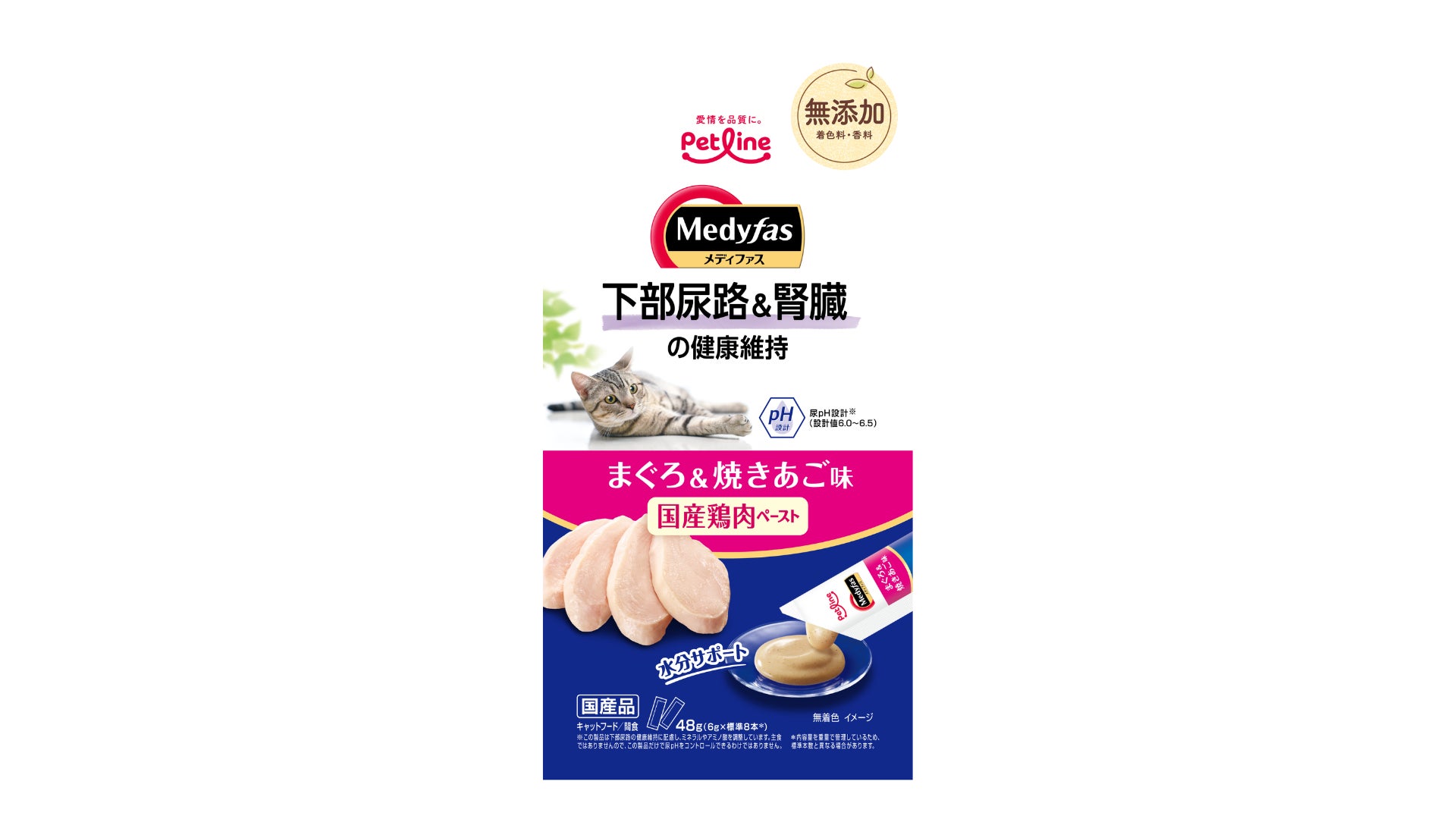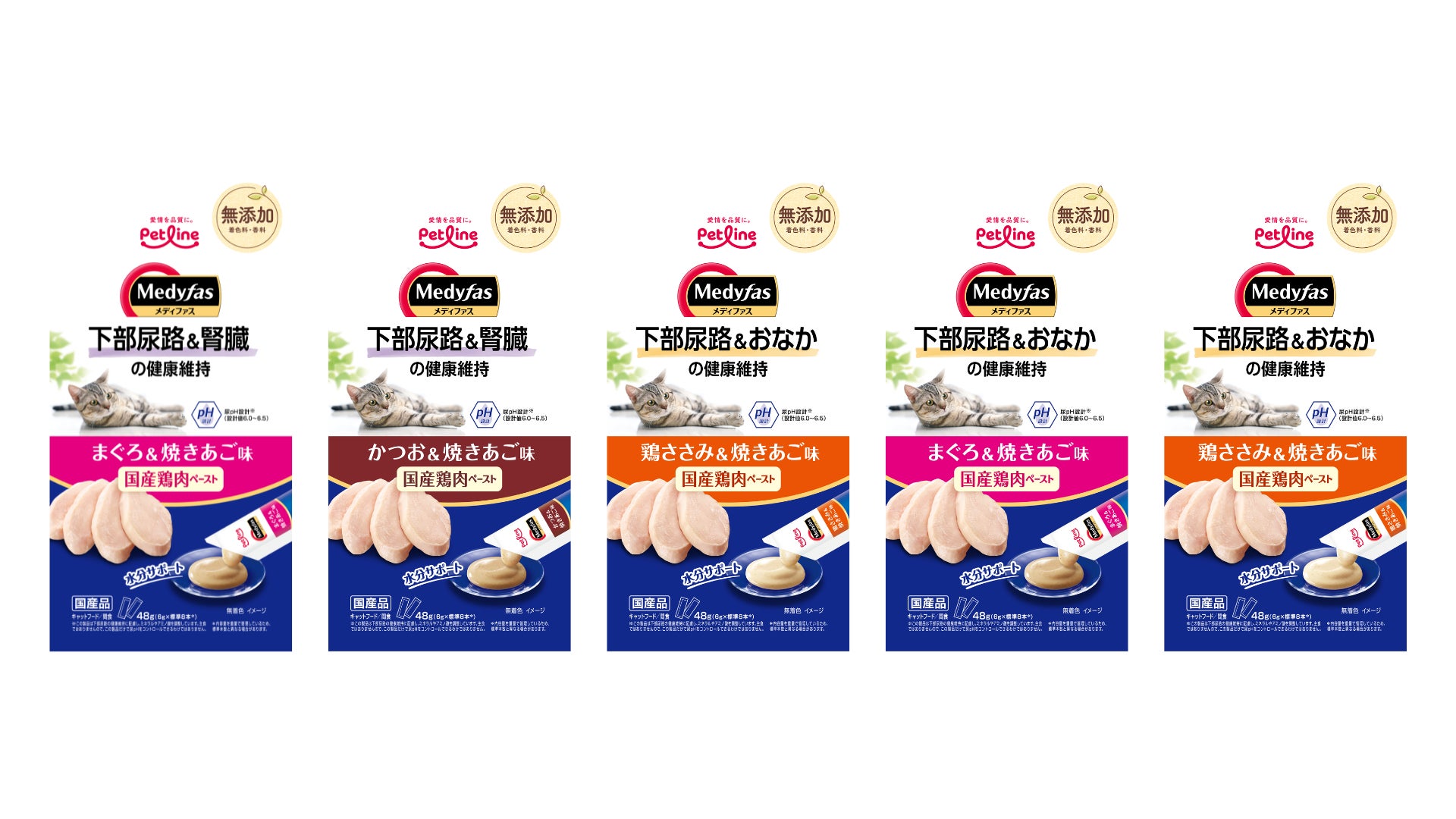 猫の年齢に応じた下部尿路の健康に配慮する「メディファス」シリーズから、ペースト状のおやつが新登場