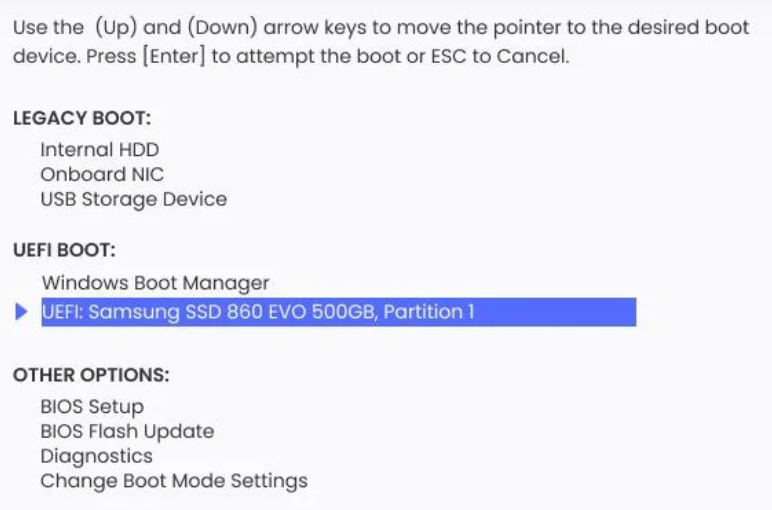 Step5:起動ディスクを探して「enter」を押し、起動ドライブを選択します。