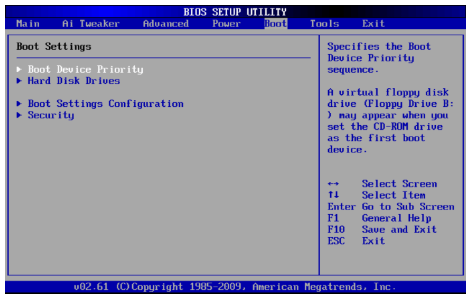 Step2:BIOS設定画面が開いたら「Boot」に移動して、起動順位を上げるデバイスを選択して「+」キーを押します。