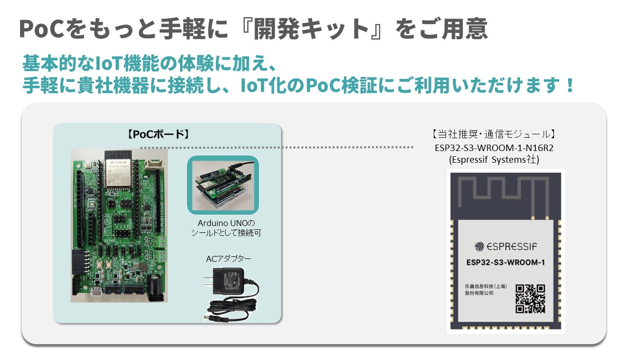 機器IoT化を実現するには、ハードウェアからネットワーク、クラウドまで幅広い対応が必要になります。その中で『PoC検証』は、IoT製品化に向けた機能・技術的な実現性の検証~開発全体の期間やコストを含めた、事業性を見極めるうえでの、重要な取り組みになります。