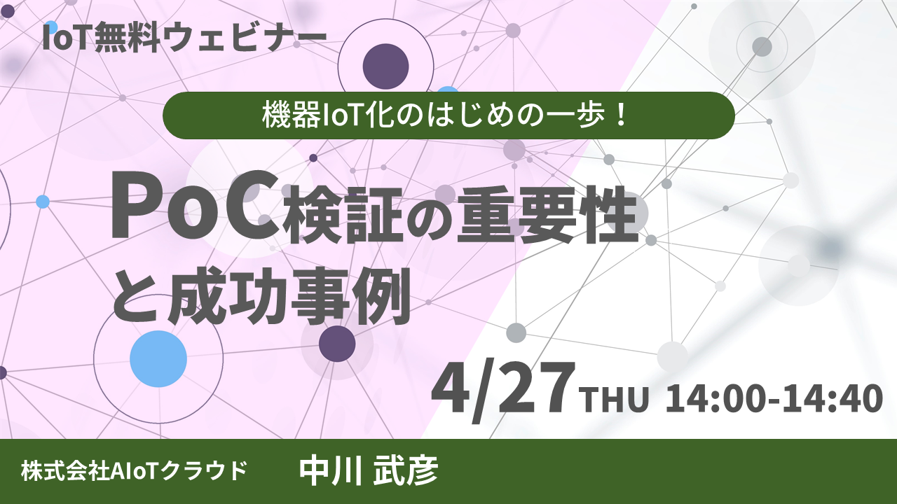 【IoT成功のカギ】機器IoT化のはじめの一歩!PoC検証の重要性と成功事例(4/27無料ウェビナー)