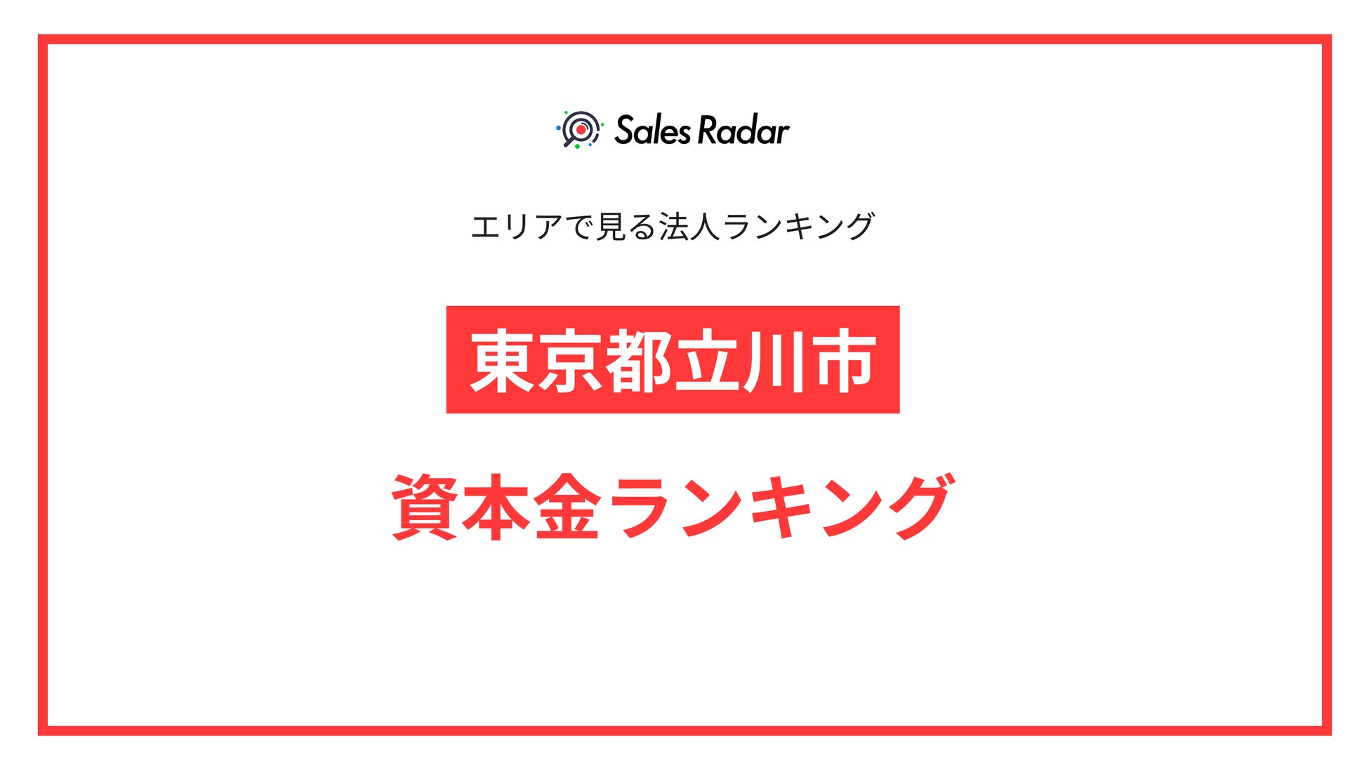 【2025年】エリアでみる法人ランキング「東京都立川市」資本金ランキング | SalesRadar DB ライブラリ