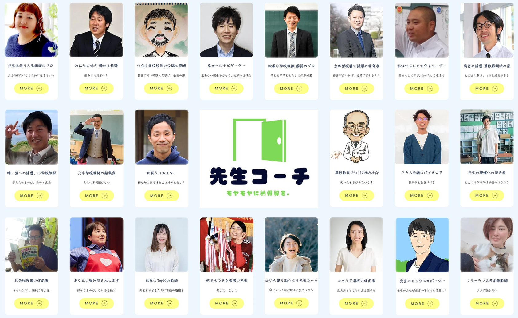 コーチングや対人支援に対して一定以上のスキルを有するとともに、学級経営、教科教育、キャリアカウンセリングなど、様々な強みを有するコーチ陣が参画しています。