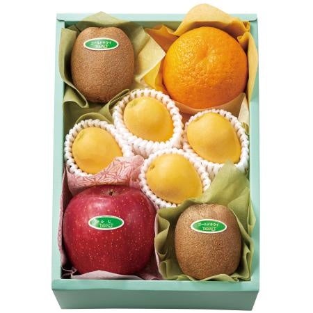 サンゴールドキウイ<ニュージーランド産>×2、ふじ<青森県産>、オレンジ<アメリカ、またはエジプト産>×各1