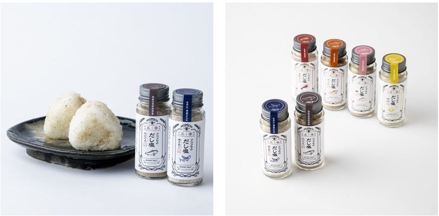 西伊豆の伝統食材「しおかつお」の焼き身の深い燻香と凝縮された旨味に、厳選した出汁素材が味のアクセント。豊富な味のバリエーションで、だし塩おにぎりがたのしめます。今回新しく、「焼きあご」と「のどくろ」が新登場。