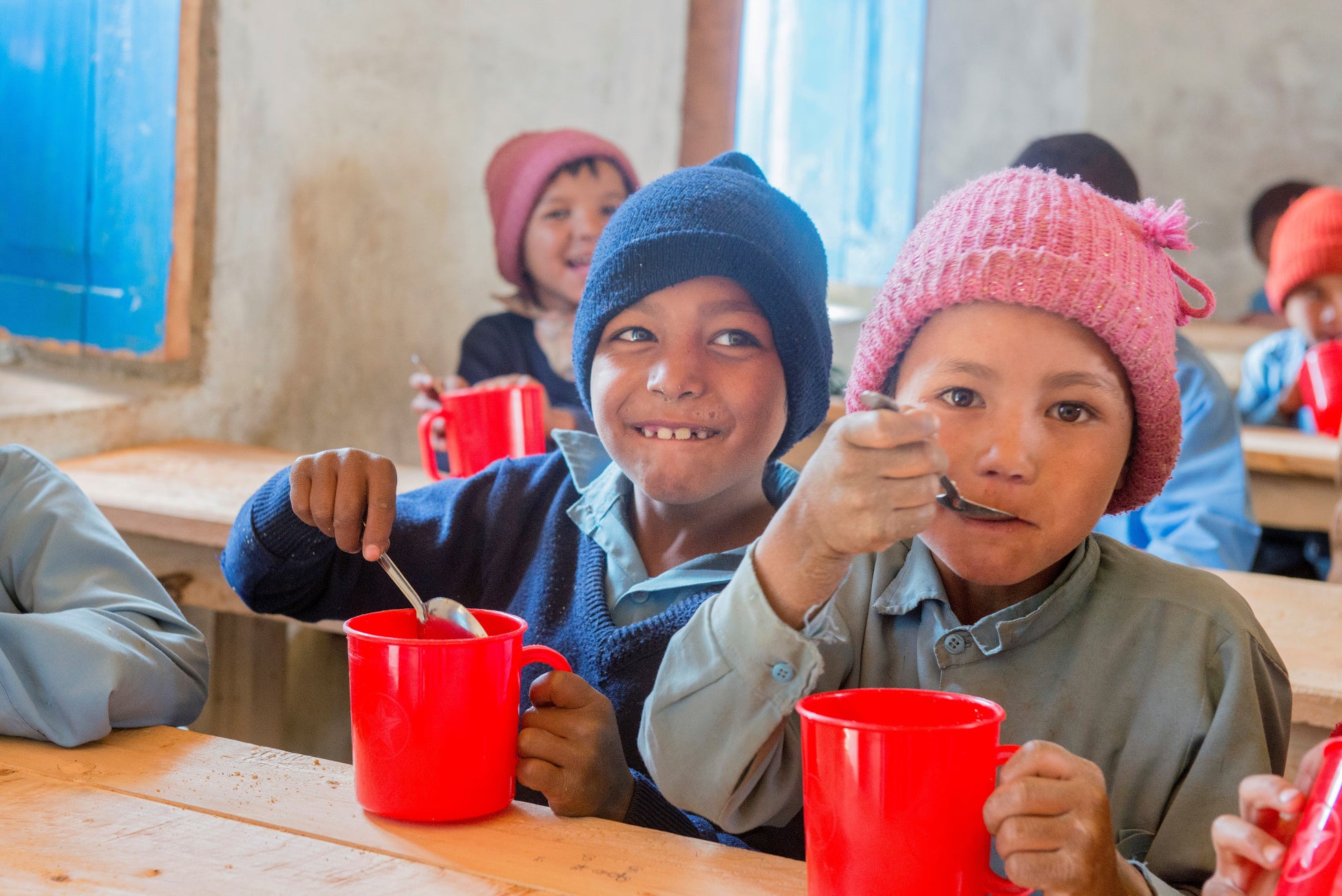 毎日のお買物で学校給食を支援できる、レッドカップキャンペーン。2011年開始以来、累計約2,600万人以上の子どもたちに学校給食を届けました(2023年時点)。国連WFPが給食を入れる容器として使っている赤いカップを目印に、レッドカップキャンペーンに賛同する企業からキャンペーンマークのついた商品が発売されています。対象商品を購入すると、その売り上げの一部が企業から寄付されます。