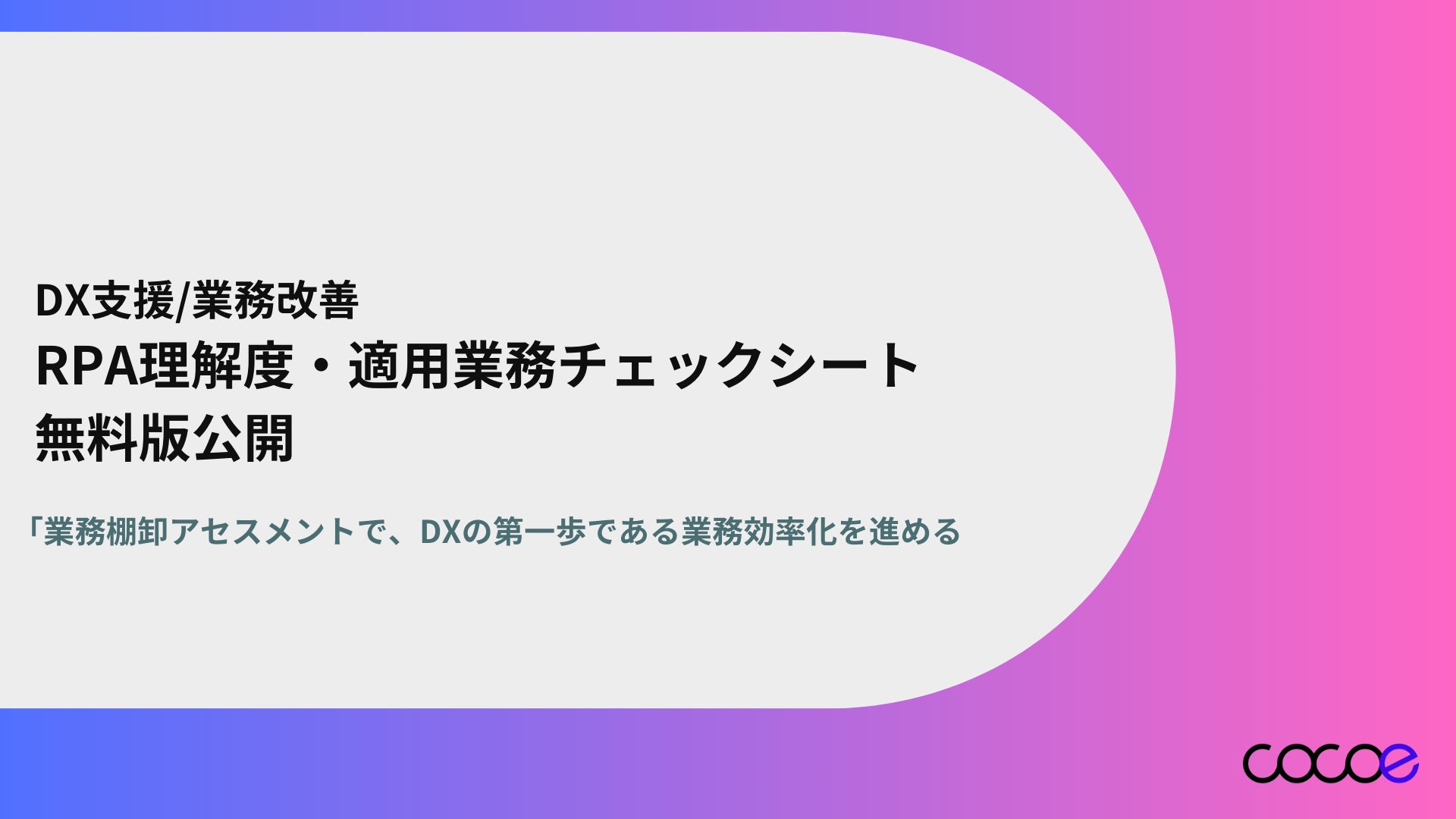 【DX支援/業務改善】「RPA 理解度チェックシート」無料試用版を公開/株式会社ココエ