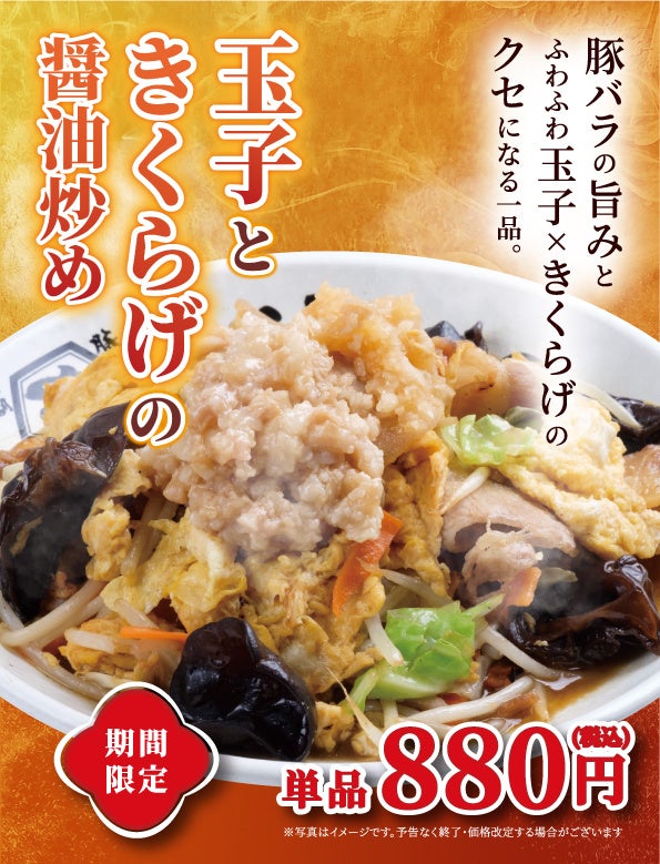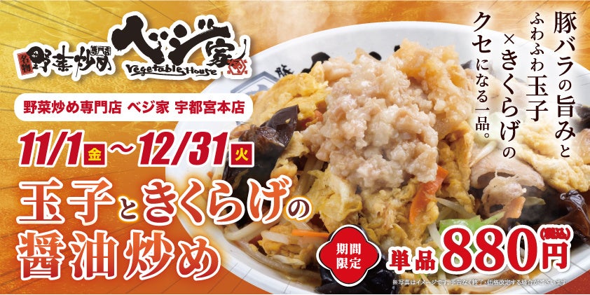 【野菜炒め専門店ベジ家】にんにく背脂が決め手!『玉子ときくらげの醤油炒め』を11月12月の期間限定で販売します!