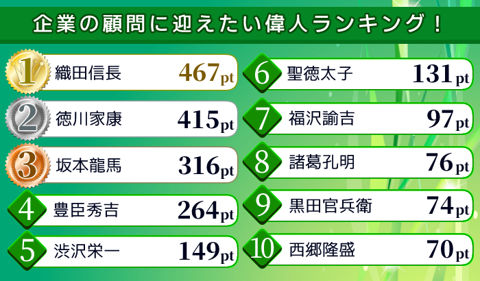 会社員605人が選ぶ!「企業の顧問に迎えたい偉人」ランキング|1位は織田信長!徳川家康、坂本龍馬もランクイン