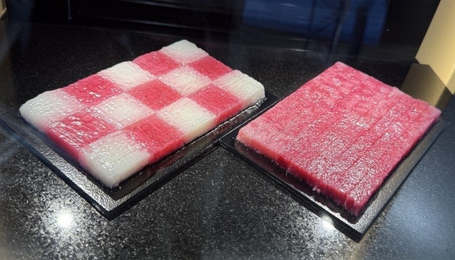 大阪ヘルスケアパビリオンは5月28日に来館者100万人を突破した、人気パビリオンの1つです。同パビリオンのプレミアムパートナーである「培養肉未来創造コンソーシアム」は、3Dバイオプリント技術による培養肉の実物およびミートメーカー(コンセプトモデル)を展示してきました(ブース名称は「家庭で作る霜降り肉」)。本展示を通じて、「お肉は『店で買うもの』から、『家庭で作るもの』へ」をコンセプトに、「個人の健康や好みに合わせた霜降りステーキを作り出せるミートメーカーが家庭にある」という「未来のキッチン」のイメージを表現しています。