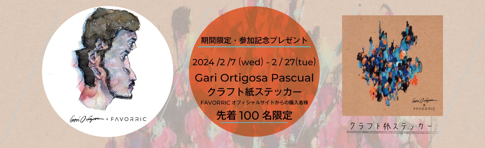 Gari OrtigosaさんのFAVORRIC参加を記念して、期間中公式サイトでご購入いただいた方、先着100名様にプレゼント!