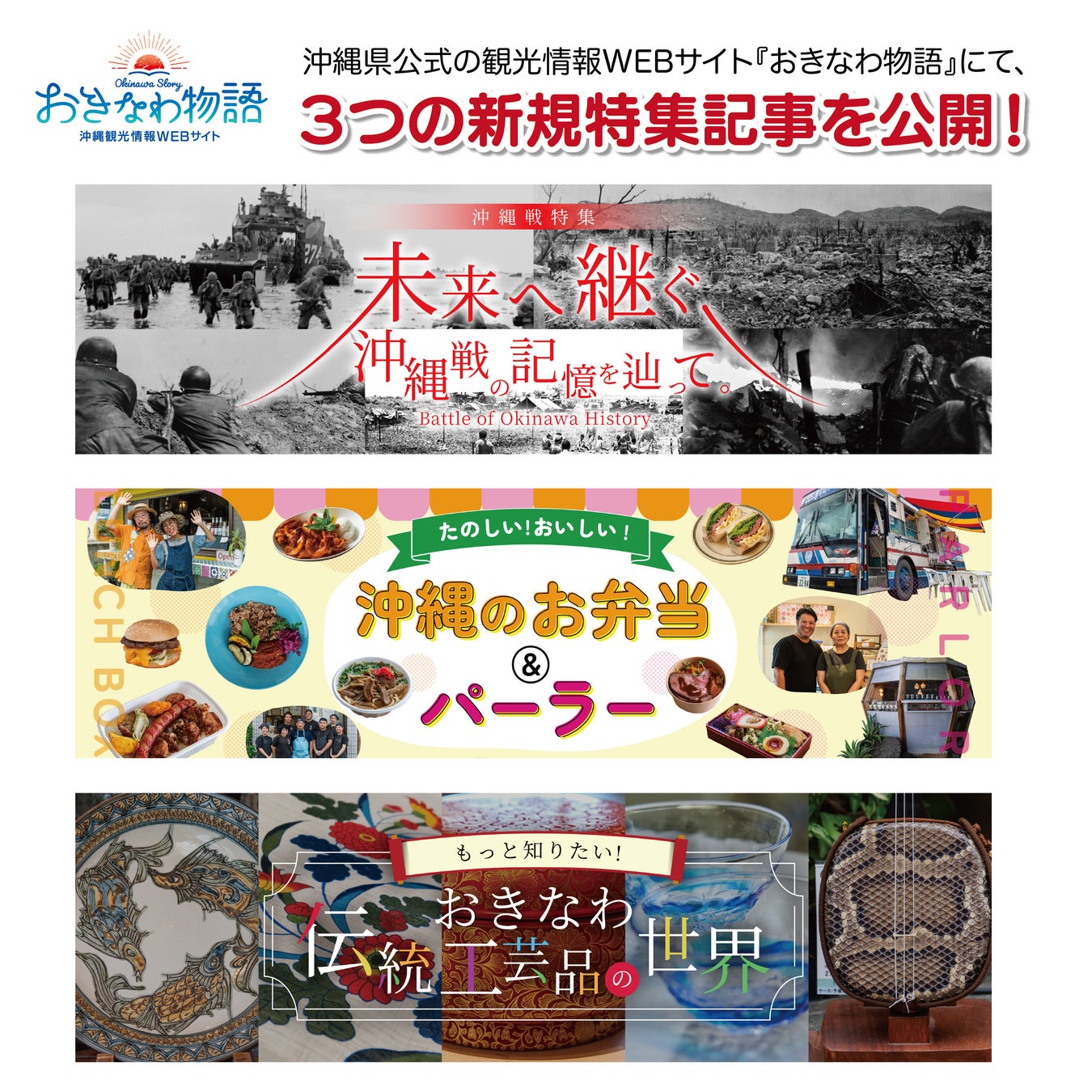 沖縄県公式観光情報WEBサイト『おきなわ物語』にて「未来へ継ぐ沖縄戦の記憶を辿って」「たのしい!おいしい!沖縄のお弁当&パーラー」「もっと知りたい!おきなわ伝統工芸品の世界」3つの新規特集記事を公開!