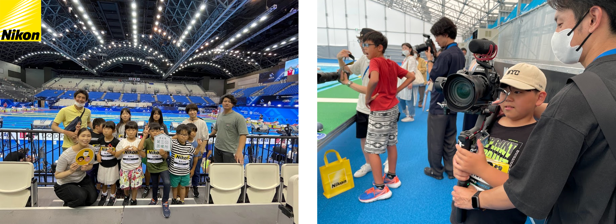 World Aquaticsに協賛しているニコンだからこそ提供できるバックステージツアーを子どもたちを対象に開催いたしました。