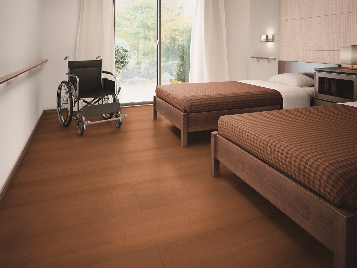 表面 | 特殊オレフィンシート [おもいやりフロアⅤ]UV抗菌耐摩耗防滑マットコート仕上げ [おもいやりフロアⅤ-VS]UV抗菌抗ウイルス耐摩耗防滑マットコート仕上げ |