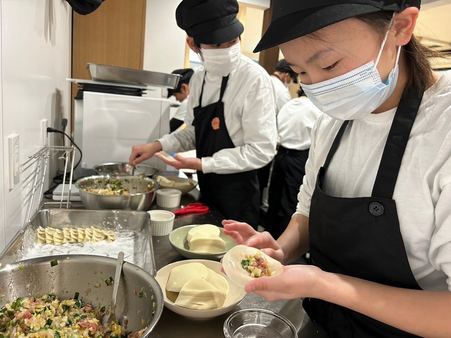<一つ一つ心を込めてギョーザを包む様子>